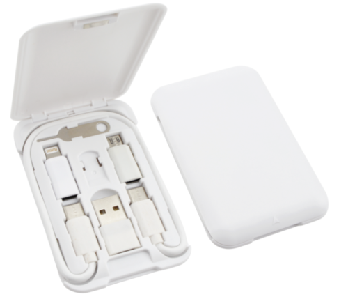 With the cables reliable data transfer capabilities, you can also transfer your pictures and files from device to device. The Multi Use Card also has a handy sim card ejection pin and a Nano-Sim holder for quick and easy sim card changes. With both front and back branding, the Multi-Use Card is the perfect promotional gift!